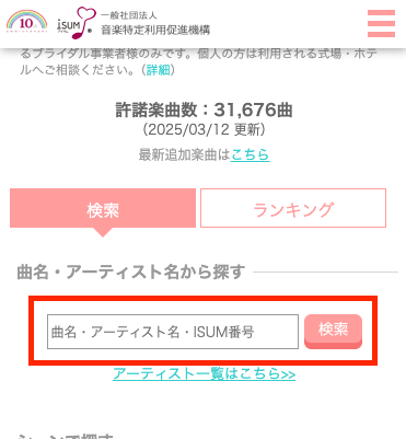 ご希望の楽曲がISUMデータベースに登録されているかを確認する方法