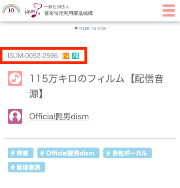 ISUM: 結婚式で使用される楽曲の著作権を管理している団体です。